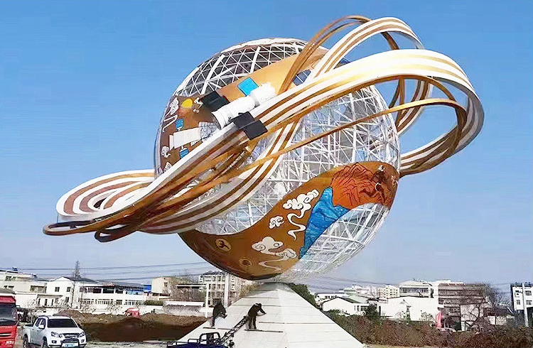 鏤空是不銹鋼雕塑的一種整體表現(xiàn)形式,就是可以從作品外面看見內(nèi)部或看穿。編織網(wǎng)格、打孔、鉆眼、花紋字符拼貼做成的雕塑都屬于鏤空樣式。鏤空不銹鋼雕塑往往會(huì)與燈光一起使用,透視而過的燈光斑駁自然,給人不一樣的視覺感受,如鏤空球。