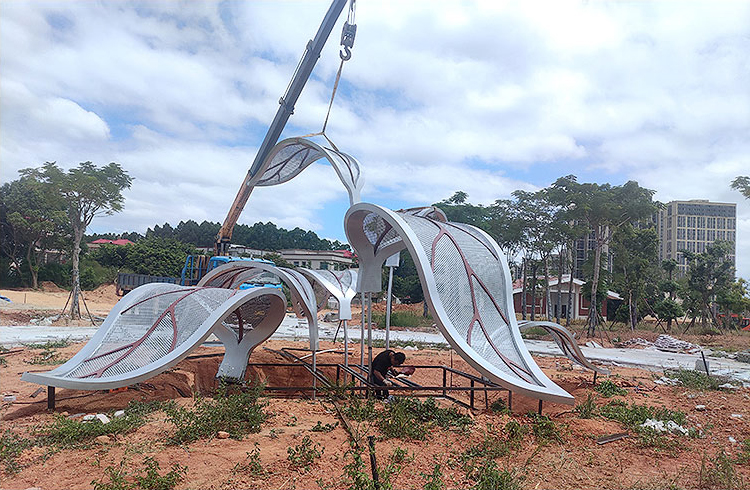 戶外園林不銹鋼雕塑除傳遞美,還需要考慮其耐用性,優(yōu)選304、316以上型材,在造型上也需要避免尖銳棱角以防意外,還需要考慮到其反射,以免對(duì)行人車輛造成視覺干擾。