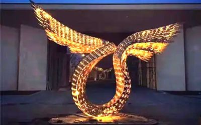 發(fā)光不銹鋼雕塑并不是雕塑本身可以發(fā)光,而是通過內(nèi)置燈源或者纏繞燈帶實(shí)現(xiàn)發(fā)光或透光效果,常見做法是在編織網(wǎng)格造型上纏繞燈帶,或者在雕塑內(nèi)部放置燈源,通過隱藏式燈帶或者鉆孔打眼讓內(nèi)部燈光透視而出而形成發(fā)光效果。